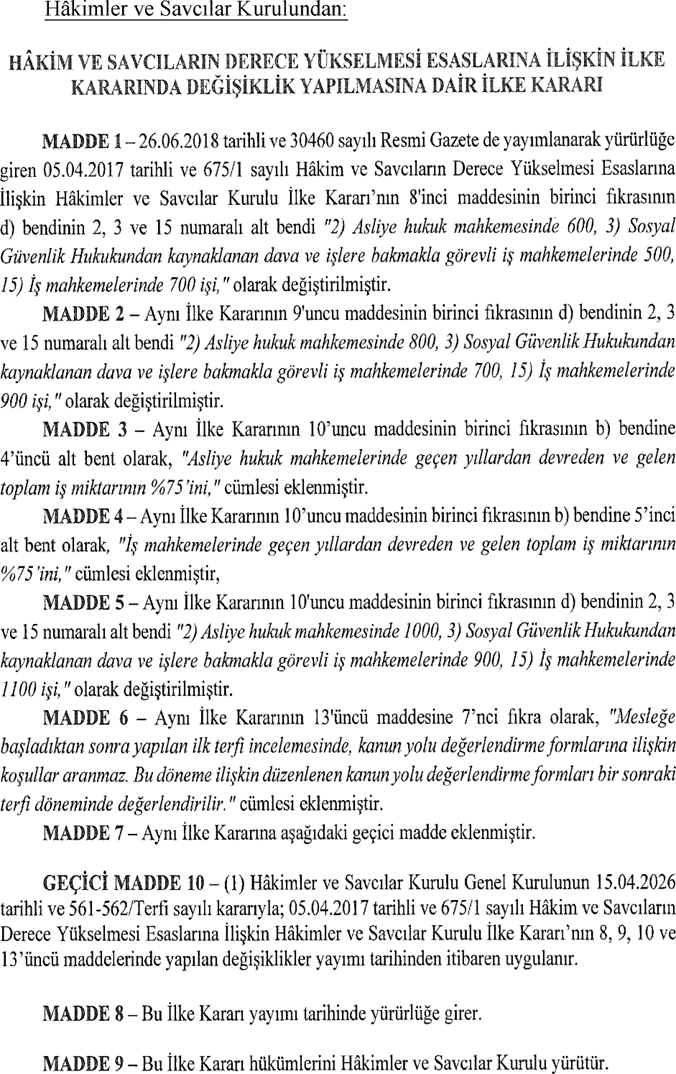 Resmi Gazete'de yayımlanan HSK'nın terfilerle ilgili ilke kararı şöyle:
