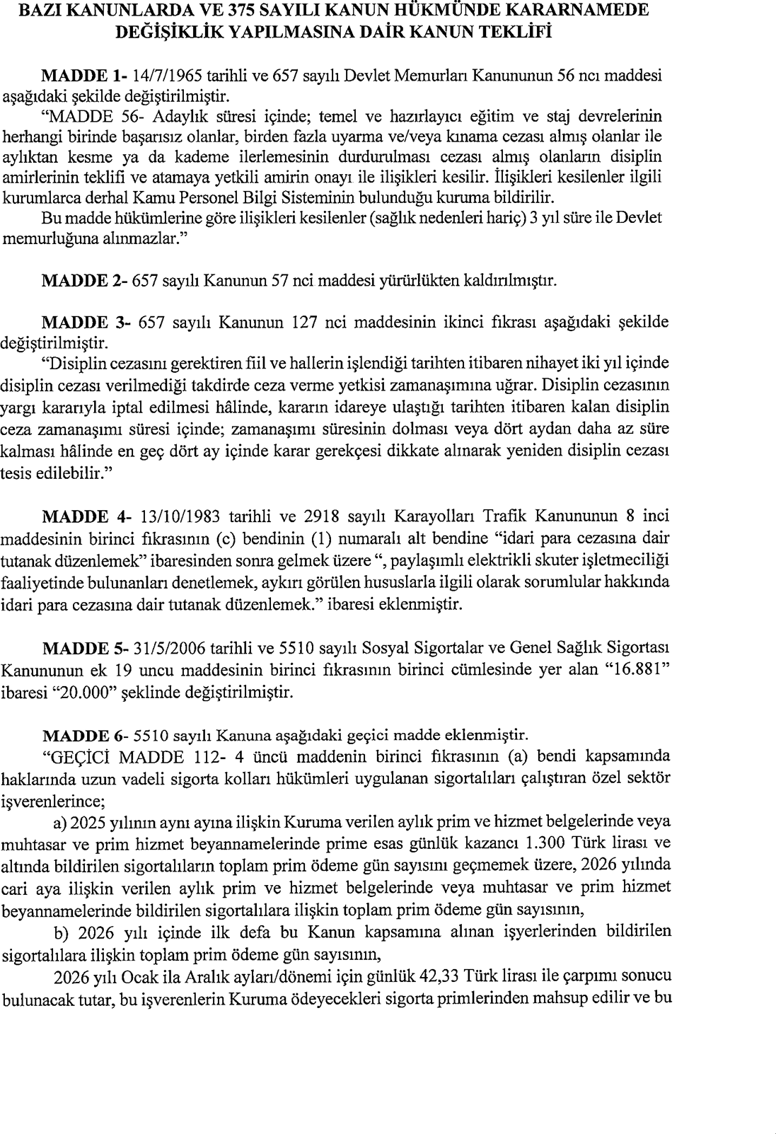 TBMM'ye sunulan en düşük emekli maaşının 20 bin TL'ye çıkarılmasını öngören yasa teklifinin tam metni şöyle: