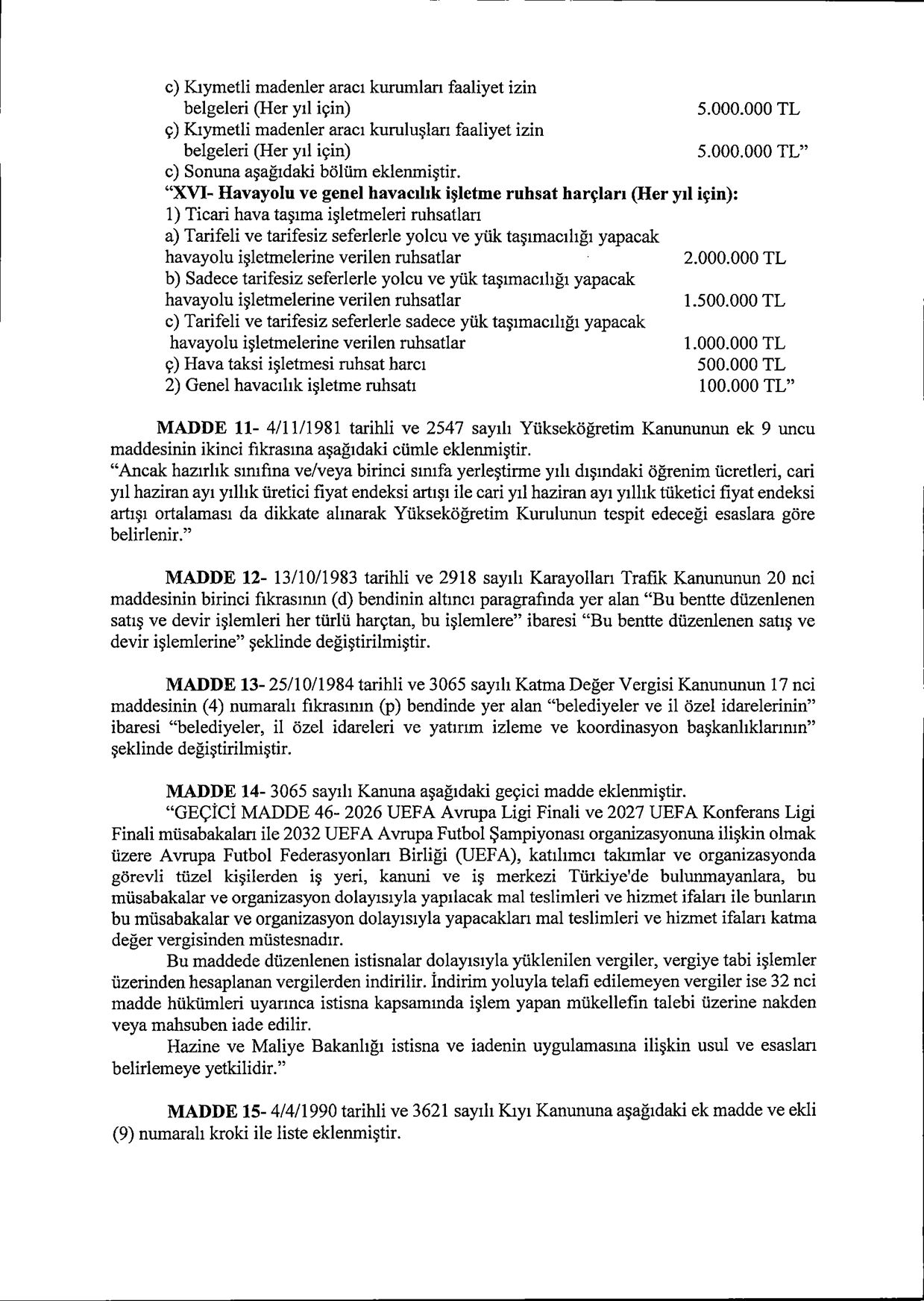 Bu bedeller büyükşehirlerde bir kat artırımlı uygulanacak.