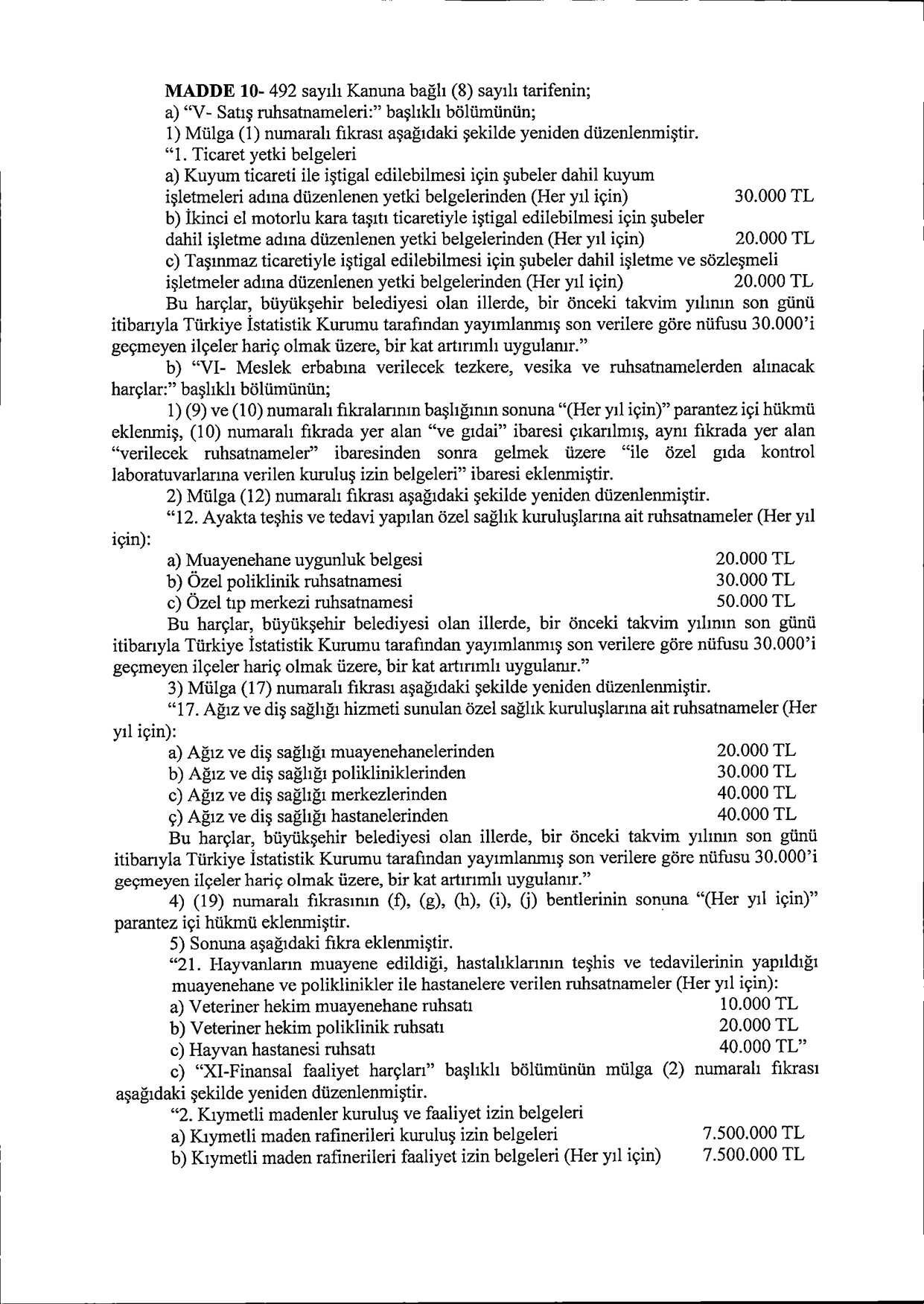 Artık özel poliklinikler, diş merkezleri ve veteriner klinikleri ruhsatlarını her yıl yenilemek için harç ödeyecek.